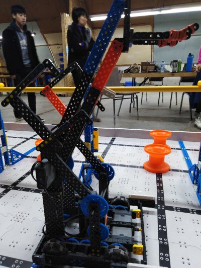 This is the claw on our robot that brought us to victory! It was designed by me to quickly grab rings and stack them. |